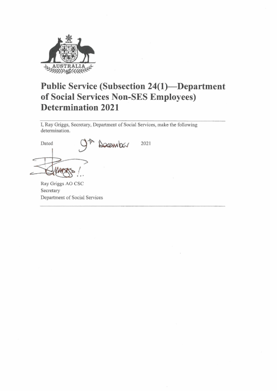This Determination provides salary and allowance rates for non-SES employees, effective from 22 January 2022.