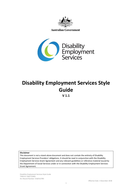 This style guide has been developed to ensure that the Disability Employment Services (DES) brand, including the brand mark, colour palette and tone of voice, is used consistently across all branded material to deliver, clear, consistent and compelling communications. In accordance with clause 65 of the Disability Employment Services Grant Agreement (the DES Grant Agreement), organisations delivering DES must comply with this style guide.