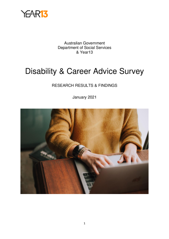 The Australian Government is committed to improving employment outcomes for people with disability. The Department of Social Services engaged Year13 to conduct a survey on the experiences of young people with disability as they transition from school to work.