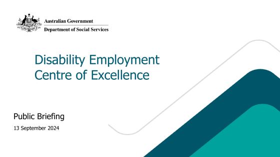 The presentation for the Disability Employment Centre of Excellence grant opportunity information webinar, held on 13 September 2024.