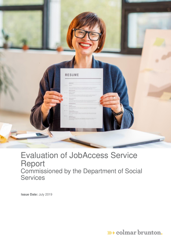 An evaluation of the JobAccess Service was undertaken by Colmar Brunton, in partnership with the department, between July 2018 and June 2019.