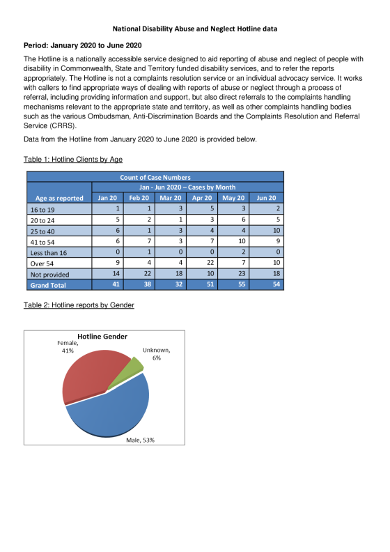 The National Disability Abuse and Neglect Hotline (The Hotline), is a free, independent and confidential service for reporting abuse and neglect of people with disability.
