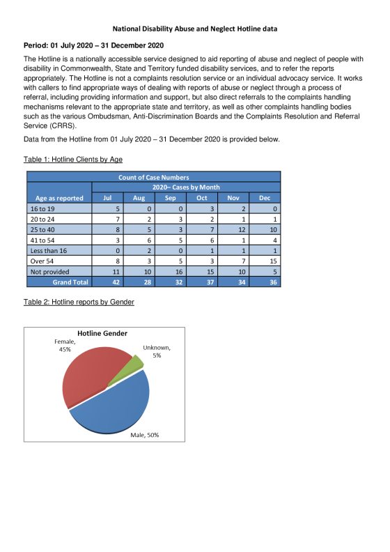 The National Disability Abuse and Neglect Hotline (The Hotline), is a free, independent and confidential service for reporting abuse and neglect of people with disability.
