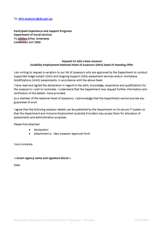 - National Panel of Assessors Program Deed of Standing Offer