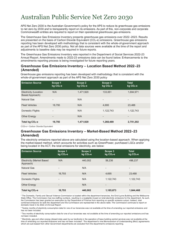 The Greenhouse Gas Emissions Inventories were reported in our annual reports from 2022–23 onwards. Amendments made to emissions data can be found attached. Enhancements to the amendments reporting process are being investigated for future reporting years.