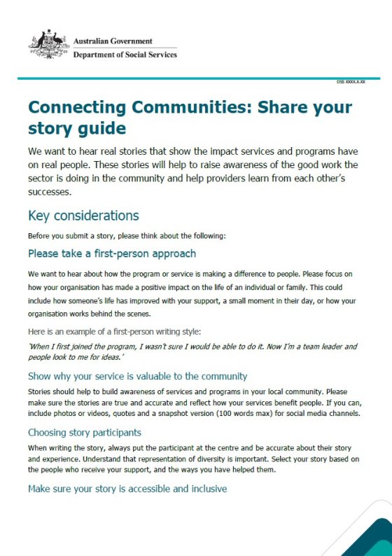 The guide includes information on permissions, consent and image use. The guide also provides quick and easy tips to help you write your story in your own voice and make it interesting.