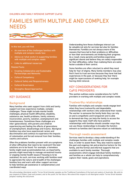 - Advice on 'what works' in supporting families with multiple and complex needs