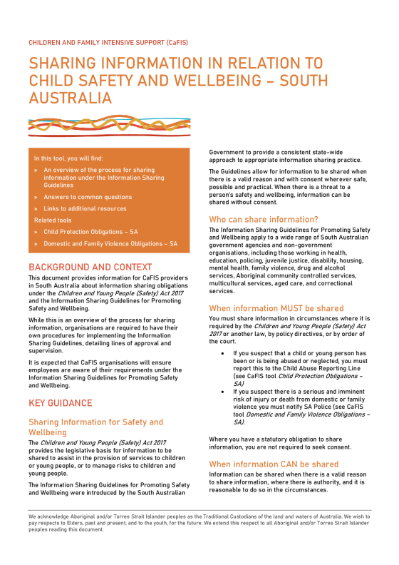 - An overview of the process for sharing information under the Information Sharing Guidelines