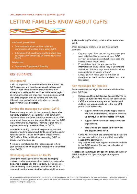 - A template that could help you think about how to engage with families to let them know about CaFIS