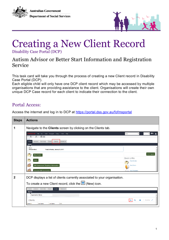 This task card will take you through the process of creating a new Client record in the DCP.