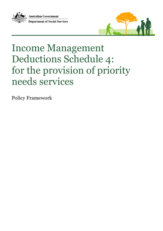 The Income Management Deductions Schedule 4 Policy Framework (Framework) outlines the framework for organisations wishing to enter into a Schedule 4 IM Deduction Contract.