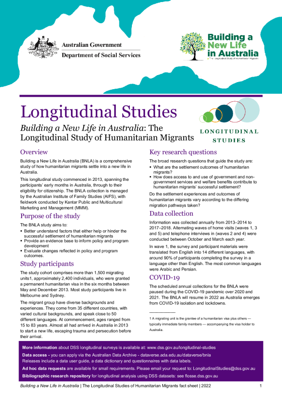 Building a New Life in Australia (BNLA) is the first comprehensive study of its kind in more than a decade. It studies how refugees settle into a new life in Australia.