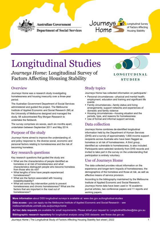 Journeys Home: A Longitudinal Study of Factors Affecting Housing Stability fact sheet
