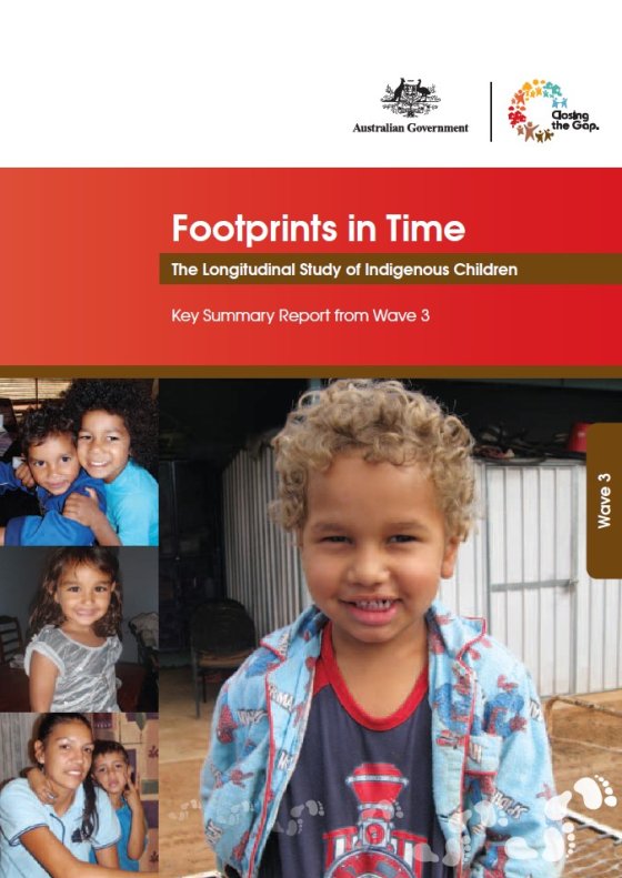 Footprints in Time: the Longitudinal Study of Indigenous Children is the most comprehensive source of longitudinal information on early childhood development for Aboriginal and Torres Strait Islander people. It shows how early childhood experiences can impact on later life and provides policy makers with information about ‘what matters’ and ‘what works’ for producing improved Indigenous outcomes.