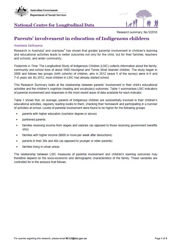 Research in Australia and overseas has shown that greater parental involvement in children’s learning and educational activities leads to better outcomes not only for the child, but for their families, teachers and schools, and wider community.
