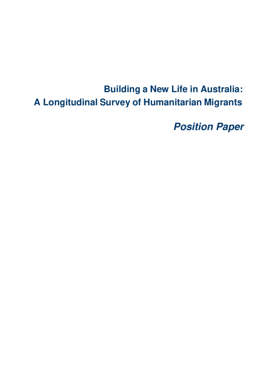 This paper was prepared as part of the development work for Building a New Life in Australia: The Longitudinal Survey of Humanitarian Migrants.