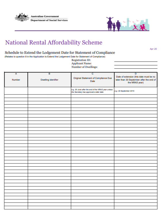 Once completed, please submit your application form and schedule to nras@dss.gov.au.