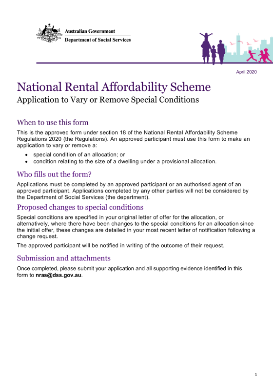Once completed, please submit your application form and all supporting evidence identified in this form to nras@dss.gov.au.