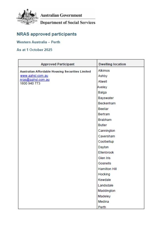 For your convenience, we have attached a list of contacts that manage NRAS dwellings, across Western Australia regional and city area.