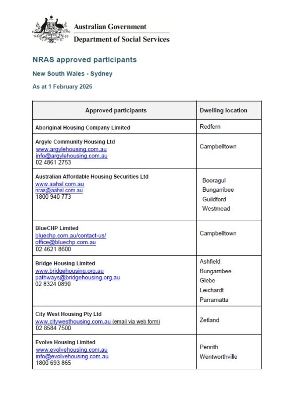 For your convenience, we have attached a list of contacts that manage NRAS dwellings, across NSW regional and city areas.