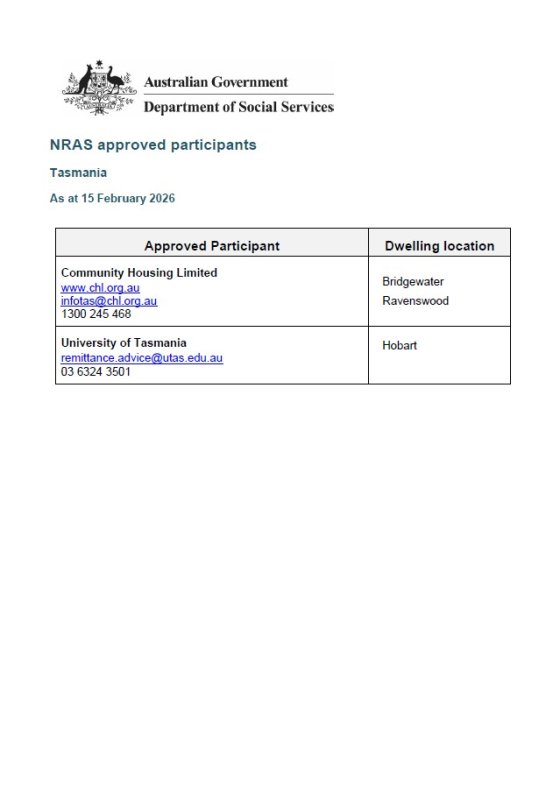 In Tasmania, prospective tenants need to contact an NRAS tenancy manager directly to check NRAS dwelling availability.