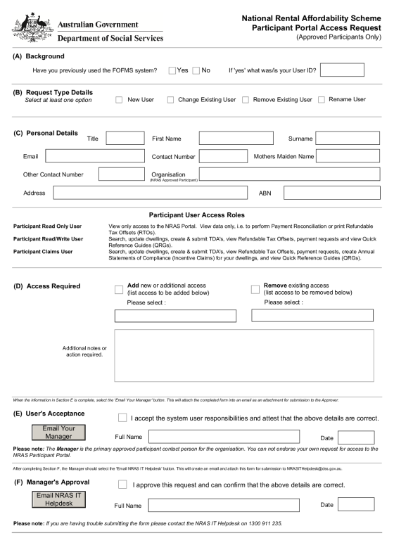 If you are unable to submit your application form, email nras@dss.gov.au for assistance or contact: