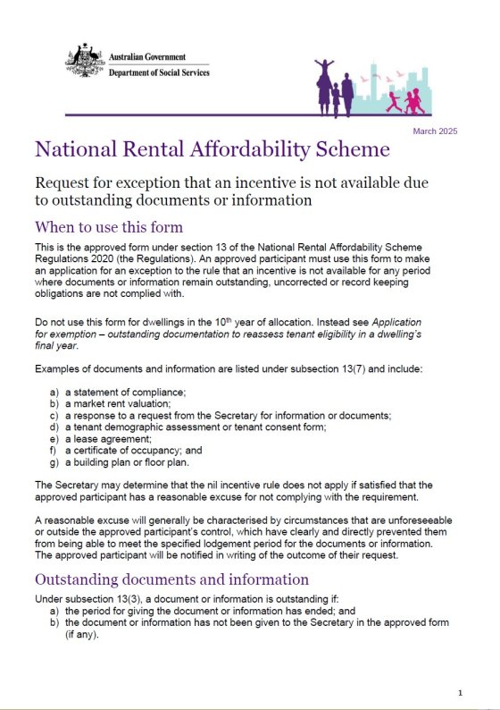 You must use this form to apply to make an application for an exception to the rule that an incentive is not available for any period where documents or information remain outstanding, uncorrected or record keeping obligations are not complied with.