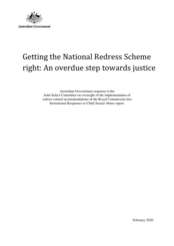 On 20 June 2017 the House of Representatives agreed to a Senate resolution that a joint select committee on oversight of the implementation of redress related recommendations of the Royal Commission into Institutional Responses to Child Sexual Abuse be established following the tabling of the final report of the Royal Commission into Institutional Responses to Child Sexual Abuse (the Royal Commission).