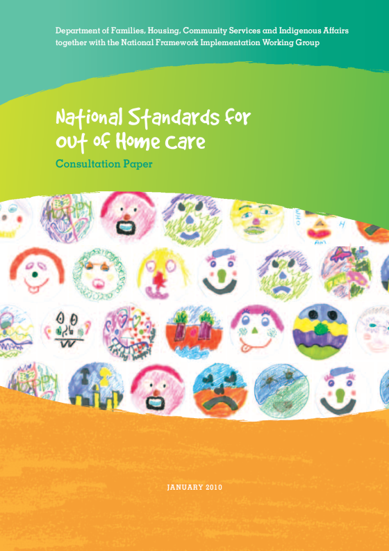 This Consultation Paper has been developed to inform the consultation stage of the process for developing National Standards in Out of Home Care (the National Standards). The National Standards are intended to apply to formal care arrangements. Formal Out of Home Care service options include, but are not limited to, residential care, foster care and kinship care (where the carer is supported by an agency).